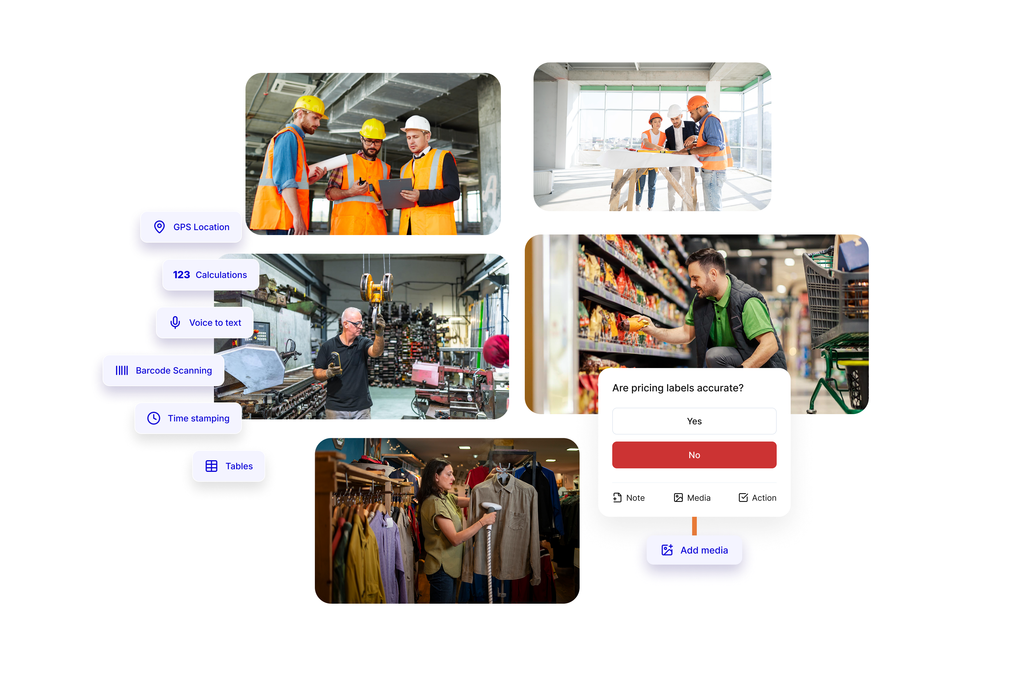 Annotated images automatically attach to the relevant inspection items, issues, and corrective actions in the system.